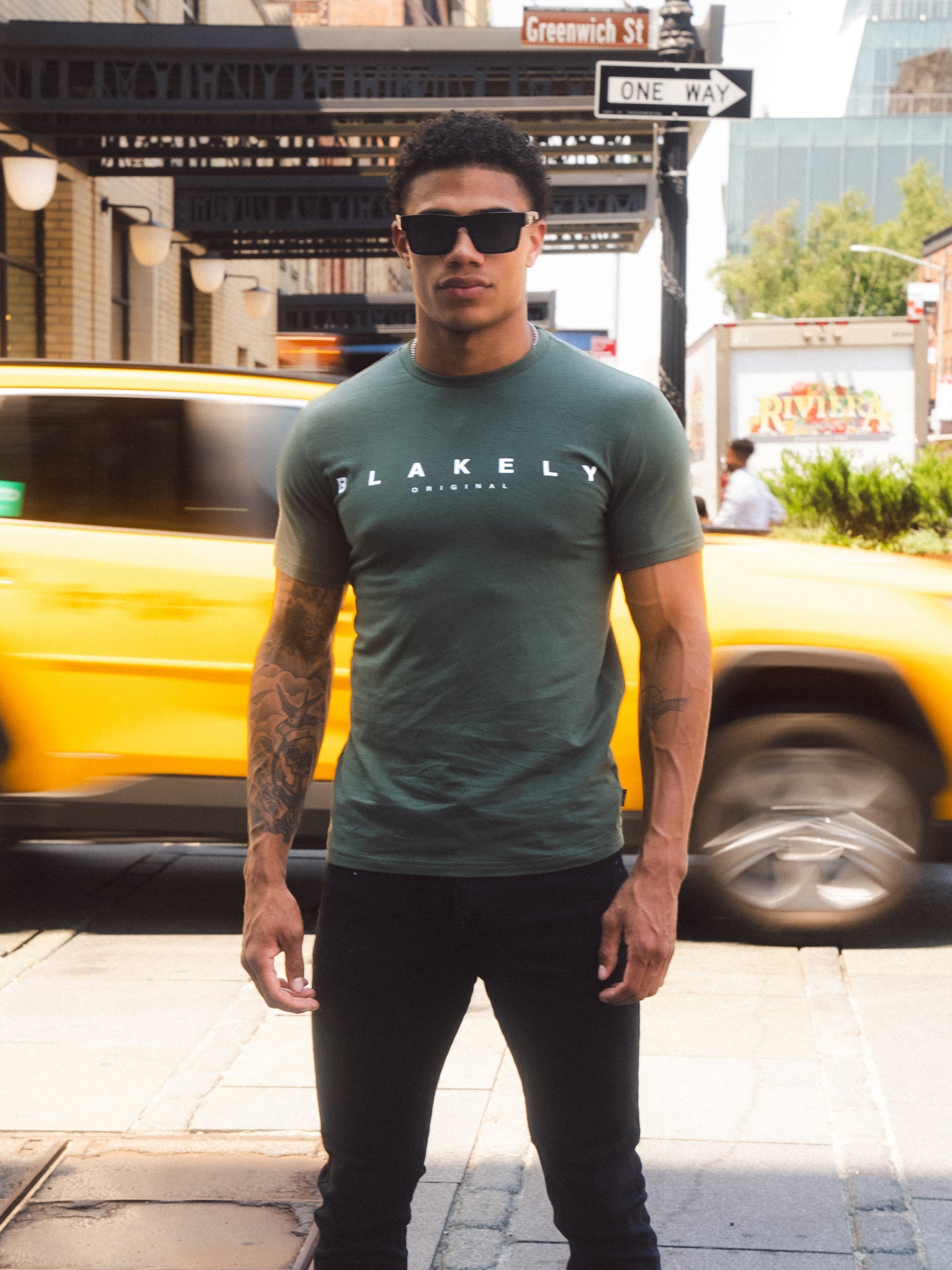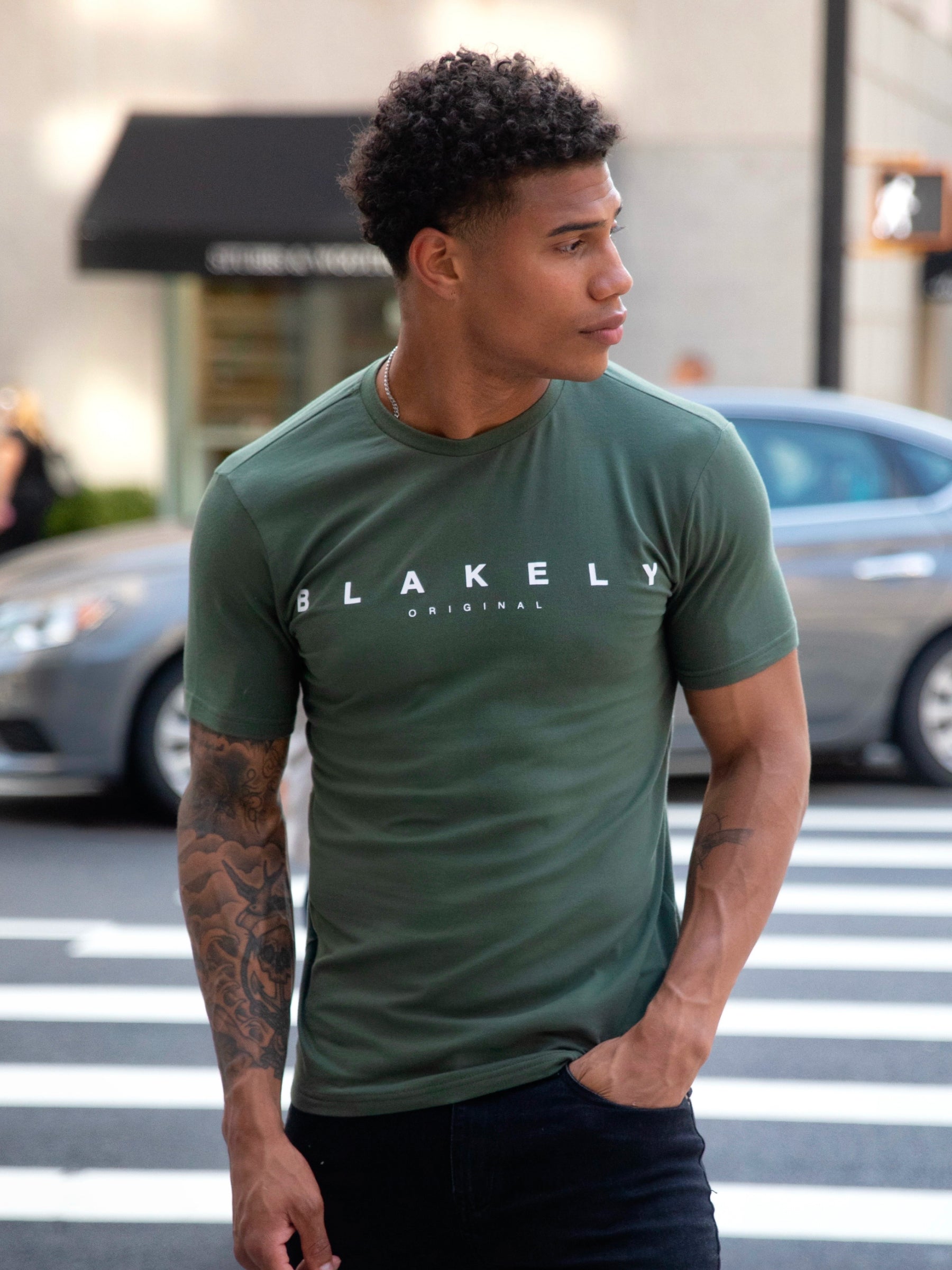 Introducing the Tahiti T-Shirt in green, a slim-fit t-shirt made from a soft cotton blend. It has short sleeves, a crewneck collar, and is finished with Blakely branding on the centre front.