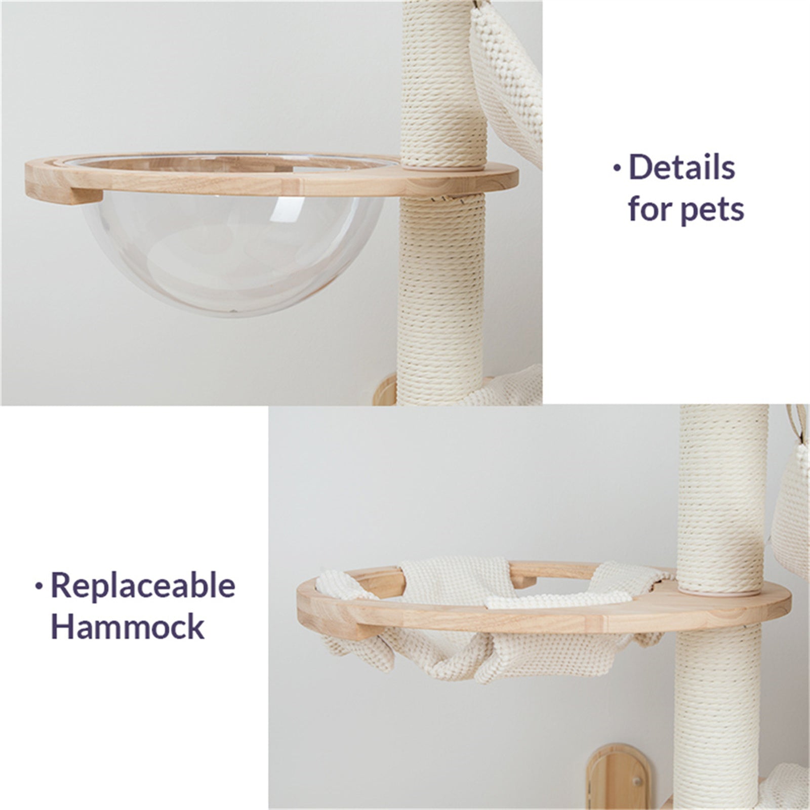• Made from high-density oak wood, this cat tree offers excellent strength, wear-resistance, and a long service life, while soft fleece cushions add comfort and warmth.
